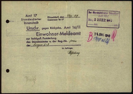 Heirat der beiden am 30.08.1917 in Düsseldorf